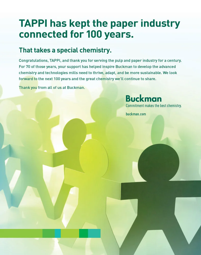 Buckman Chemical congratulates The Technological Association of the Pulp and Paper Industry (TAPPI) on their 100th anniversary.