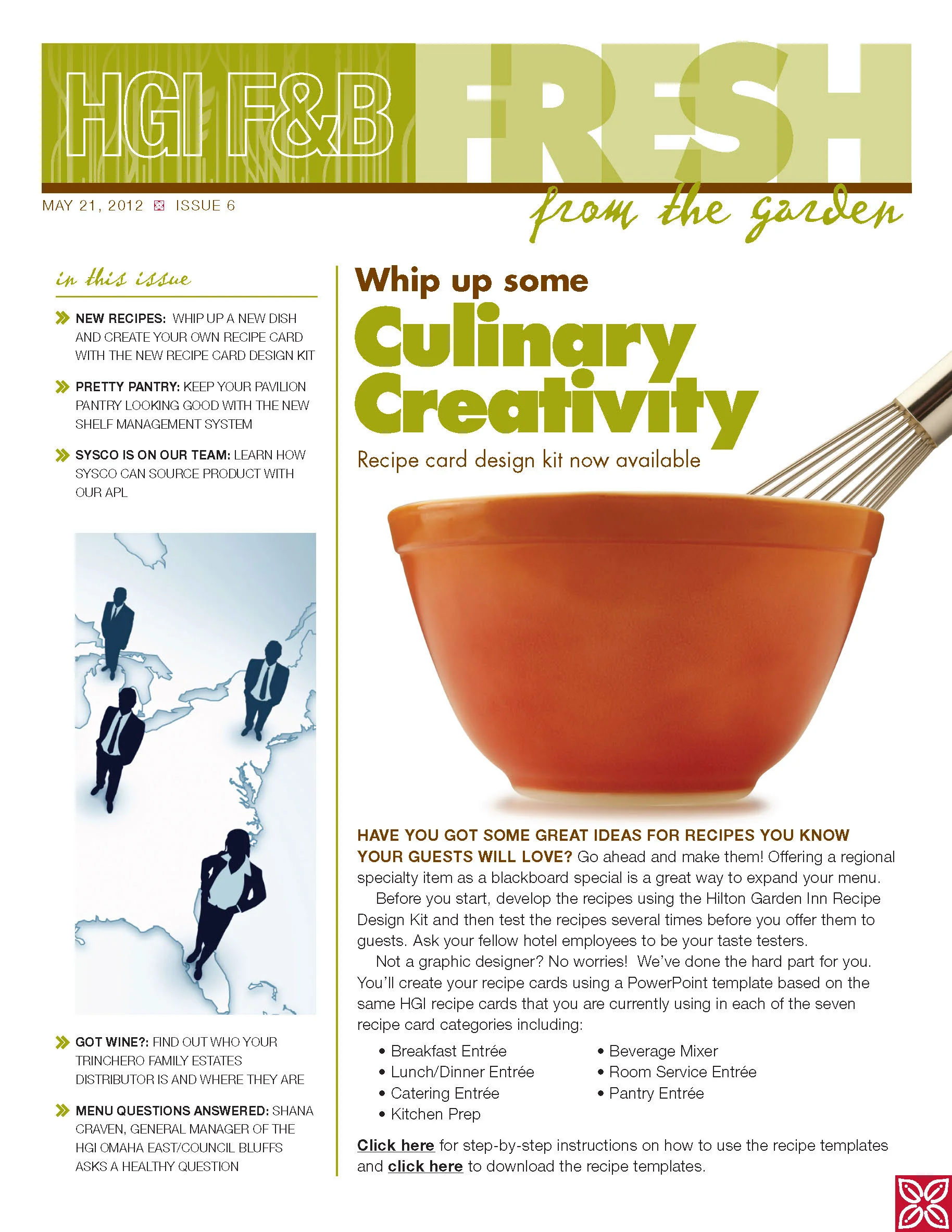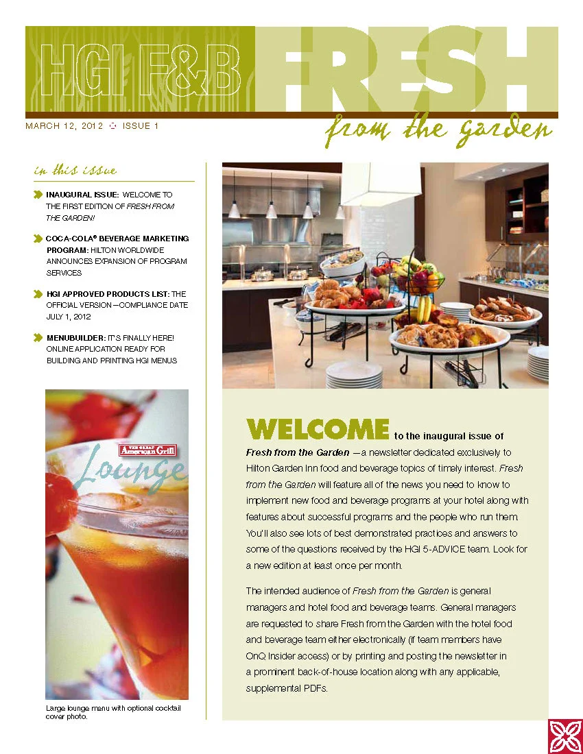 A newsletter designed for HGI food and beverage operations called "Fresh From the Garden".