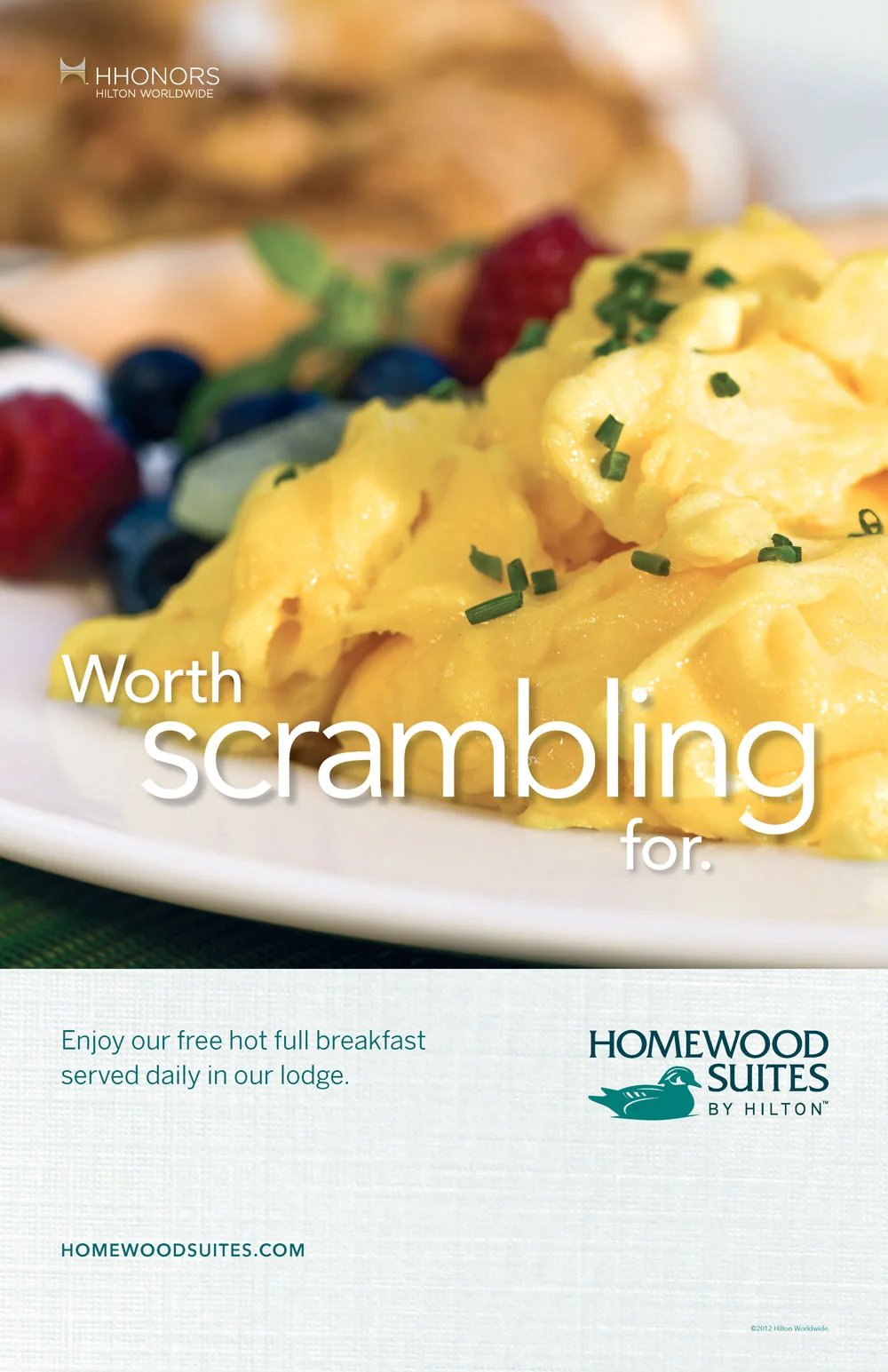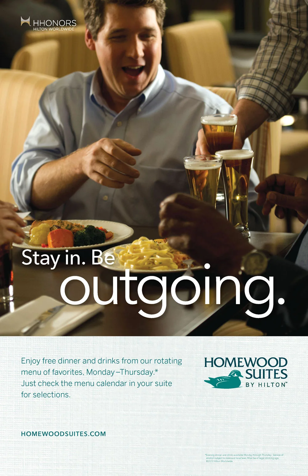 A rotating series of posters that were created to be displayed inside Homewood Suites elevators promoting different aspects of the brand.